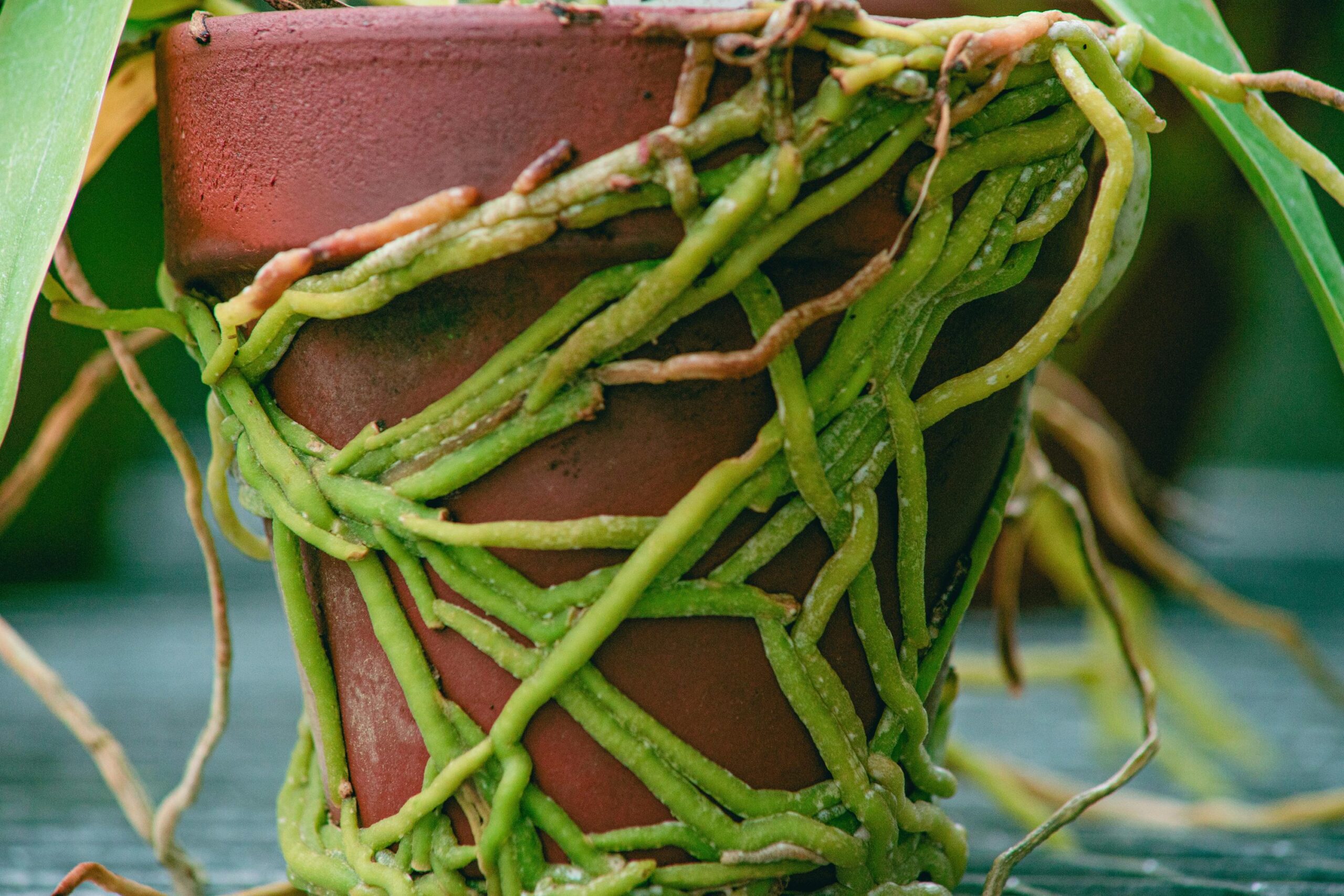 Vous remarquez des racines qui pointent par les trous de drainage ou débordent sur les bords du pot ? C’est le signe que votre plante est à l’étroit et réclame plus d’espace. Ne coupez pas ces racines, elles sont vitales !